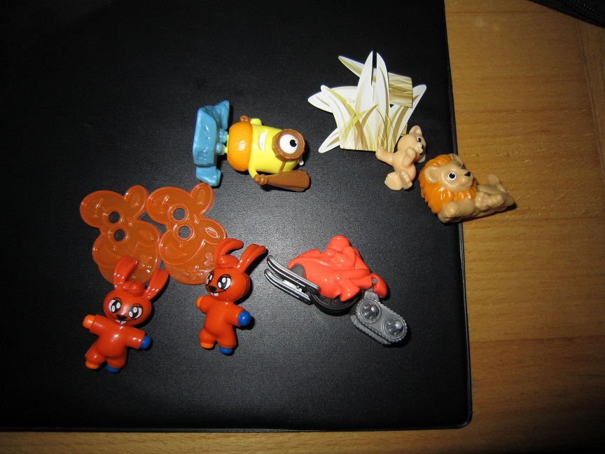 Uz pevnych par rokov nas drzi zbieranie figuriek z Kindervajicok. Poslednu dobu je to strasne. Kedze si vyberam tie tazsie vajicka, nejako sa nam namnozili niektore postavicky, napr. zo serie Atronautov mame asi 3 korytnacky, 3 medvedov a ziadneho papagaja. Zo starsej serie Natoon mame napr. troch hrochov. Ma zaujem niekto povymienat?