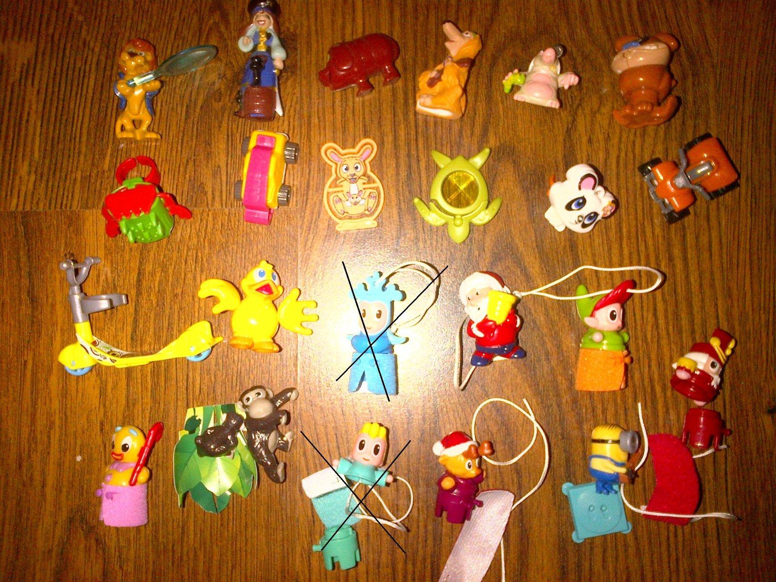 Uz pevnych par rokov nas drzi zbieranie figuriek z Kindervajicok. Poslednu dobu je to strasne. Kedze si vyberam tie tazsie vajicka, nejako sa nam namnozili niektore postavicky, napr. zo serie Atronautov mame asi 3 korytnacky, 3 medvedov a ziadneho papagaja. Zo starsej serie Natoon mame napr. troch hrochov. Ma zaujem niekto povymienat?