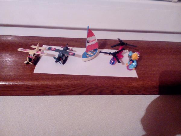 Uz pevnych par rokov nas drzi zbieranie figuriek z Kindervajicok. Poslednu dobu je to strasne. Kedze si vyberam tie tazsie vajicka, nejako sa nam namnozili niektore postavicky, napr. zo serie Atronautov mame asi 3 korytnacky, 3 medvedov a ziadneho papagaja. Zo starsej serie Natoon mame napr. troch hrochov. Ma zaujem niekto povymienat?