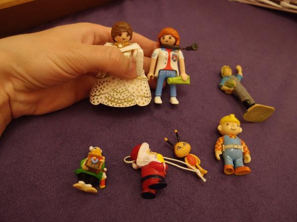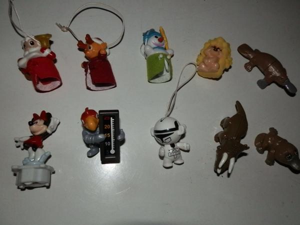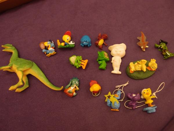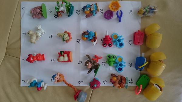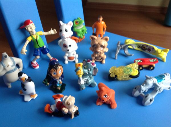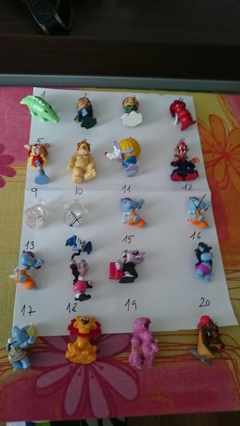 Uz pevnych par rokov nas drzi zbieranie figuriek z Kindervajicok. Poslednu dobu je to strasne. Kedze si vyberam tie tazsie vajicka, nejako sa nam namnozili niektore postavicky, napr. zo serie Atronautov mame asi 3 korytnacky, 3 medvedov a ziadneho papagaja. Zo starsej serie Natoon mame napr. troch hrochov. Ma zaujem niekto povymienat?