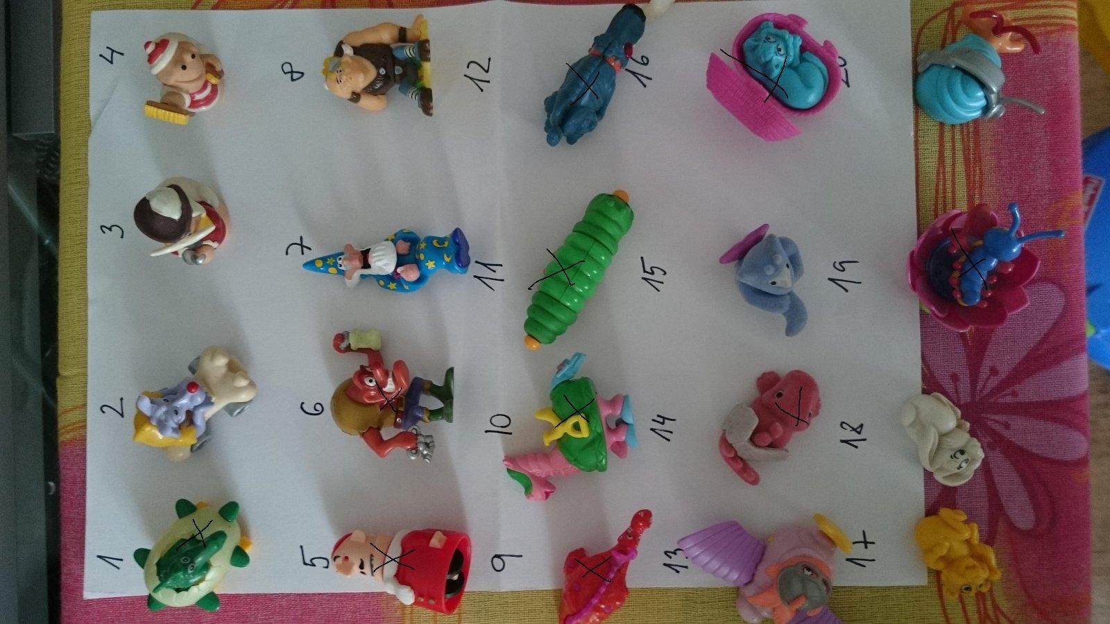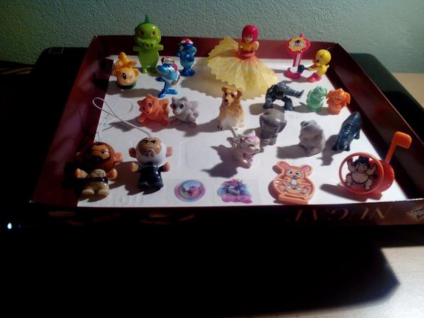 Uz pevnych par rokov nas drzi zbieranie figuriek z Kindervajicok. Poslednu dobu je to strasne. Kedze si vyberam tie tazsie vajicka, nejako sa nam namnozili niektore postavicky, napr. zo serie Atronautov mame asi 3 korytnacky, 3 medvedov a ziadneho papagaja. Zo starsej serie Natoon mame napr. troch hrochov. Ma zaujem niekto povymienat?