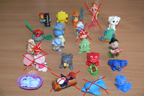 Uz pevnych par rokov nas drzi zbieranie figuriek z Kindervajicok. Poslednu dobu je to strasne. Kedze si vyberam tie tazsie vajicka, nejako sa nam namnozili niektore postavicky, napr. zo serie Atronautov mame asi 3 korytnacky, 3 medvedov a ziadneho papagaja. Zo starsej serie Natoon mame napr. troch hrochov. Ma zaujem niekto povymienat?