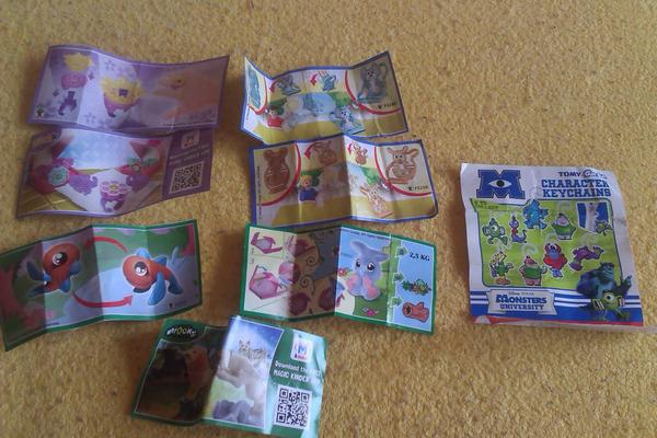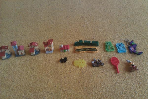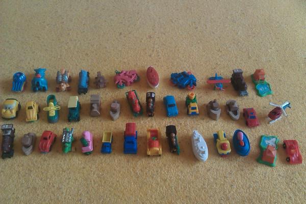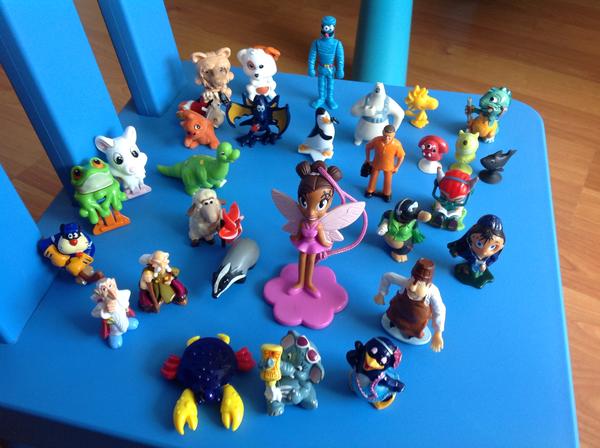 Uz pevnych par rokov nas drzi zbieranie figuriek z Kindervajicok. Poslednu dobu je to strasne. Kedze si vyberam tie tazsie vajicka, nejako sa nam namnozili niektore postavicky, napr. zo serie Atronautov mame asi 3 korytnacky, 3 medvedov a ziadneho papagaja. Zo starsej serie Natoon mame napr. troch hrochov. Ma zaujem niekto povymienat?