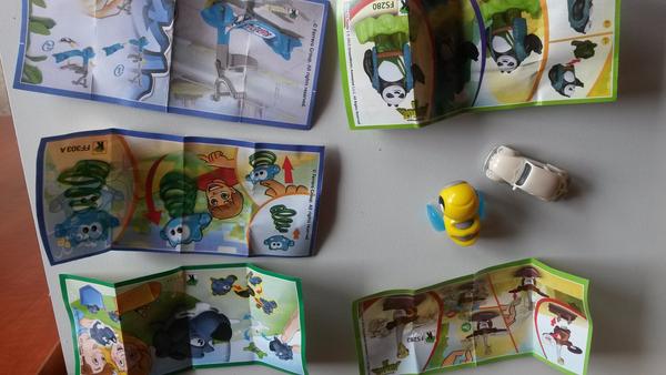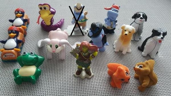 Uz pevnych par rokov nas drzi zbieranie figuriek z Kindervajicok. Poslednu dobu je to strasne. Kedze si vyberam tie tazsie vajicka, nejako sa nam namnozili niektore postavicky, napr. zo serie Atronautov mame asi 3 korytnacky, 3 medvedov a ziadneho papagaja. Zo starsej serie Natoon mame napr. troch hrochov. Ma zaujem niekto povymienat?