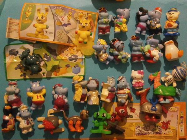 Uz pevnych par rokov nas drzi zbieranie figuriek z Kindervajicok. Poslednu dobu je to strasne. Kedze si vyberam tie tazsie vajicka, nejako sa nam namnozili niektore postavicky, napr. zo serie Atronautov mame asi 3 korytnacky, 3 medvedov a ziadneho papagaja. Zo starsej serie Natoon mame napr. troch hrochov. Ma zaujem niekto povymienat?