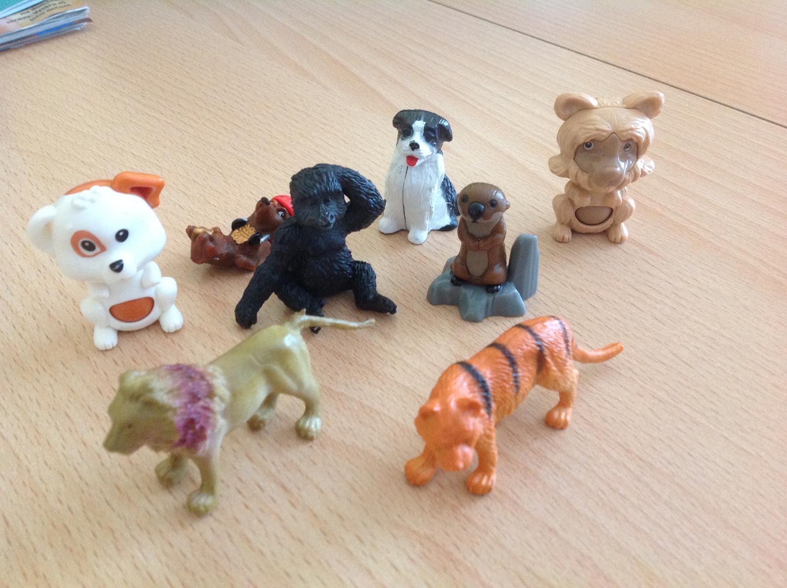 Uz pevnych par rokov nas drzi zbieranie figuriek z Kindervajicok. Poslednu dobu je to strasne. Kedze si vyberam tie tazsie vajicka, nejako sa nam namnozili niektore postavicky, napr. zo serie Atronautov mame asi 3 korytnacky, 3 medvedov a ziadneho papagaja. Zo starsej serie Natoon mame napr. troch hrochov. Ma zaujem niekto povymienat?