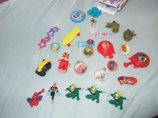 Uz pevnych par rokov nas drzi zbieranie figuriek z Kindervajicok. Poslednu dobu je to strasne. Kedze si vyberam tie tazsie vajicka, nejako sa nam namnozili niektore postavicky, napr. zo serie Atronautov mame asi 3 korytnacky, 3 medvedov a ziadneho papagaja. Zo starsej serie Natoon mame napr. troch hrochov. Ma zaujem niekto povymienat?