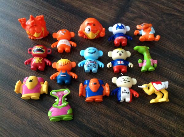 Uz pevnych par rokov nas drzi zbieranie figuriek z Kindervajicok. Poslednu dobu je to strasne. Kedze si vyberam tie tazsie vajicka, nejako sa nam namnozili niektore postavicky, napr. zo serie Atronautov mame asi 3 korytnacky, 3 medvedov a ziadneho papagaja. Zo starsej serie Natoon mame napr. troch hrochov. Ma zaujem niekto povymienat?