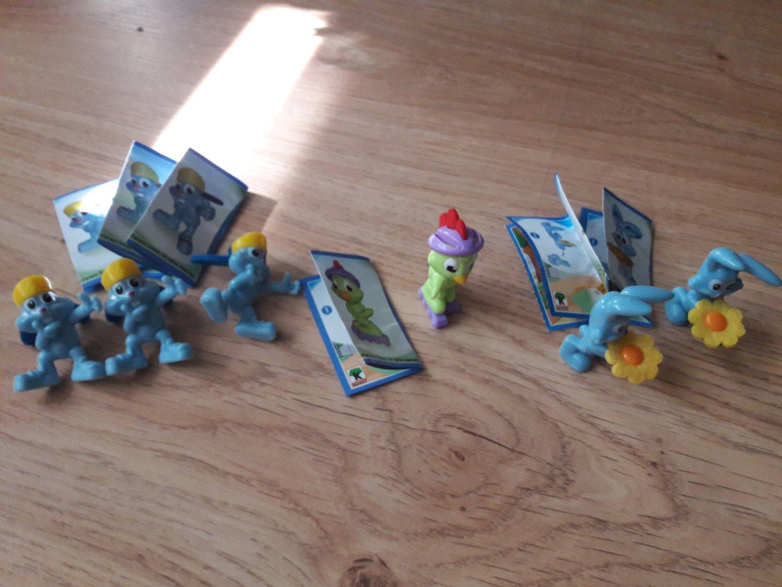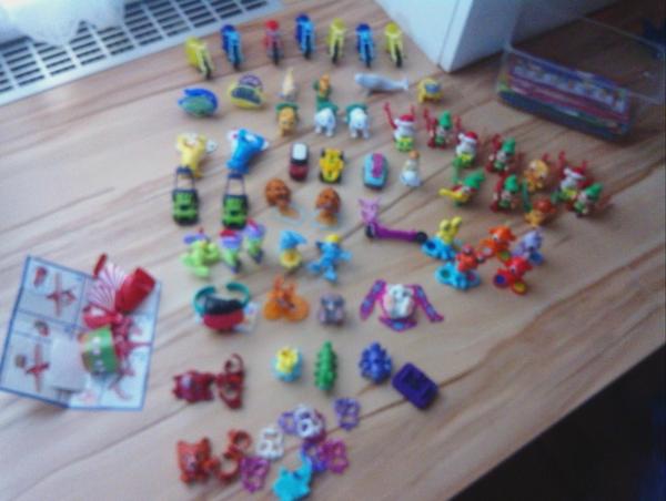 Uz pevnych par rokov nas drzi zbieranie figuriek z Kindervajicok. Poslednu dobu je to strasne. Kedze si vyberam tie tazsie vajicka, nejako sa nam namnozili niektore postavicky, napr. zo serie Atronautov mame asi 3 korytnacky, 3 medvedov a ziadneho papagaja. Zo starsej serie Natoon mame napr. troch hrochov. Ma zaujem niekto povymienat?