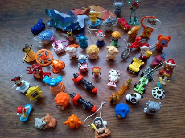 Uz pevnych par rokov nas drzi zbieranie figuriek z Kindervajicok. Poslednu dobu je to strasne. Kedze si vyberam tie tazsie vajicka, nejako sa nam namnozili niektore postavicky, napr. zo serie Atronautov mame asi 3 korytnacky, 3 medvedov a ziadneho papagaja. Zo starsej serie Natoon mame napr. troch hrochov. Ma zaujem niekto povymienat?