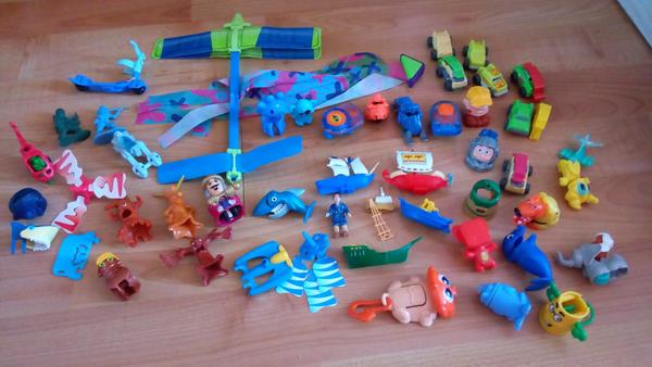 Uz pevnych par rokov nas drzi zbieranie figuriek z Kindervajicok. Poslednu dobu je to strasne. Kedze si vyberam tie tazsie vajicka, nejako sa nam namnozili niektore postavicky, napr. zo serie Atronautov mame asi 3 korytnacky, 3 medvedov a ziadneho papagaja. Zo starsej serie Natoon mame napr. troch hrochov. Ma zaujem niekto povymienat?