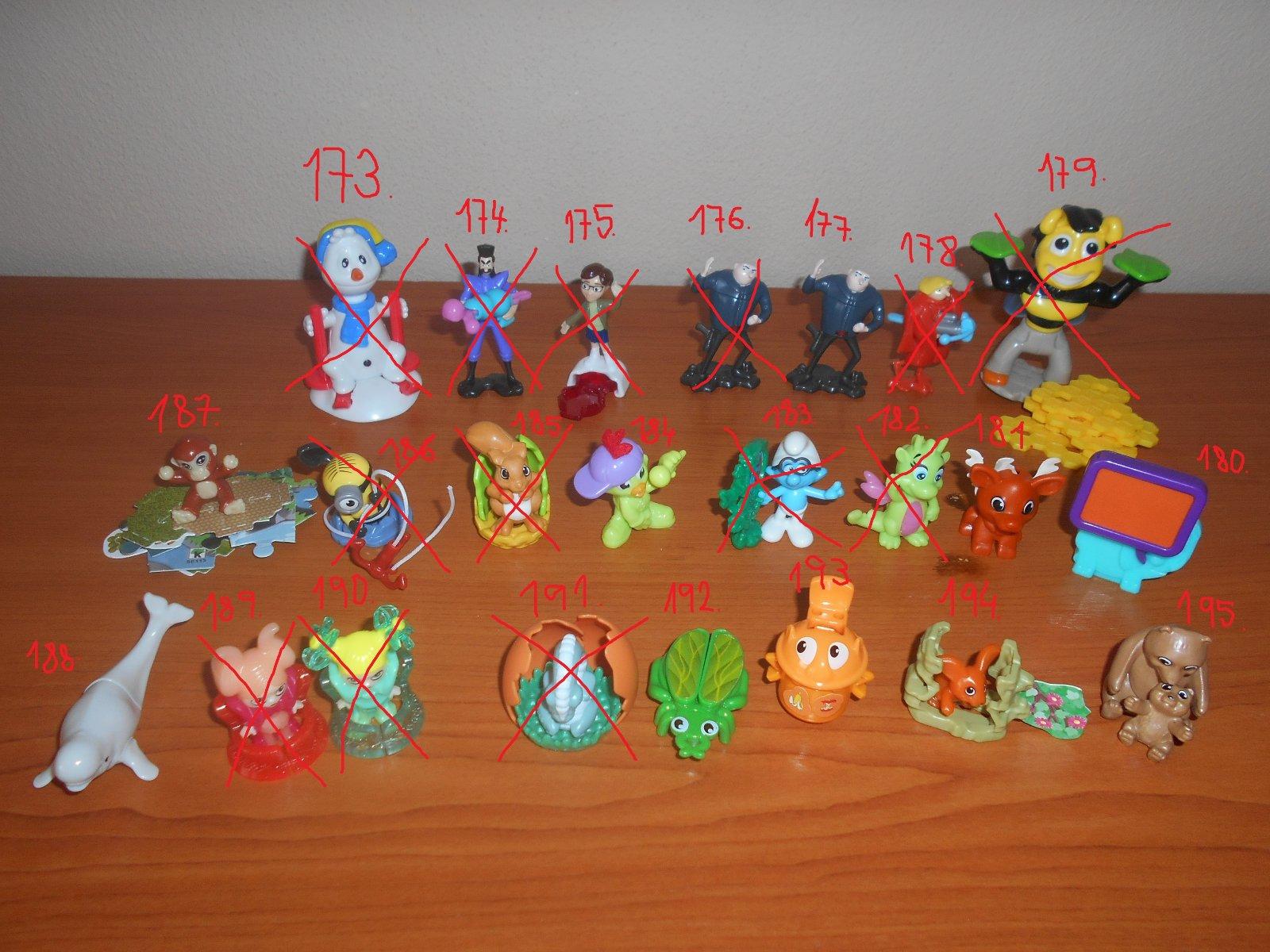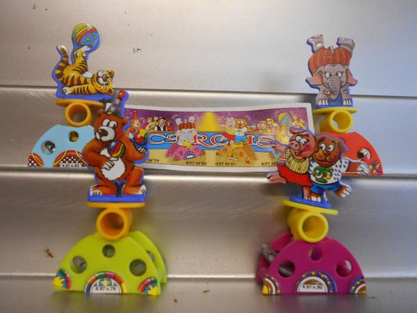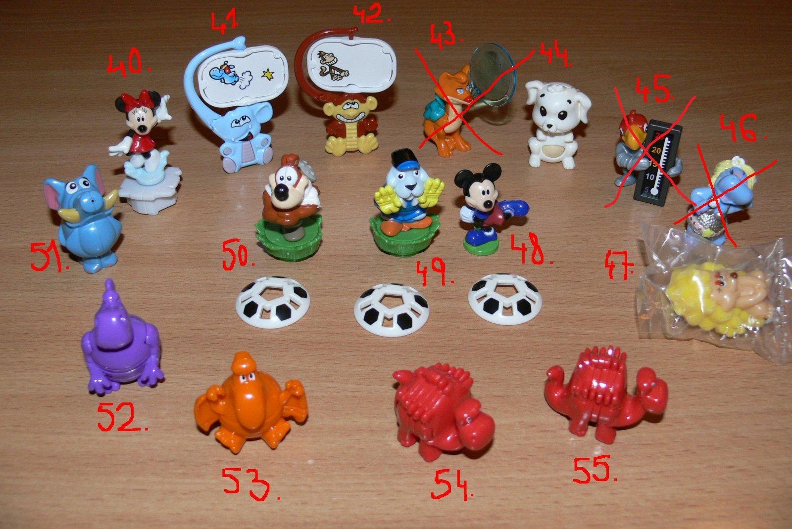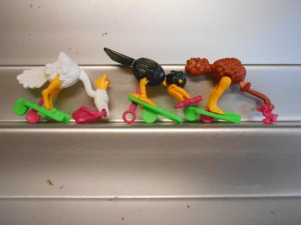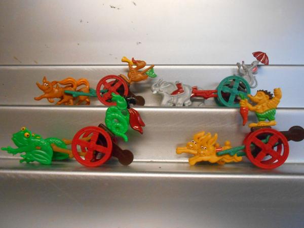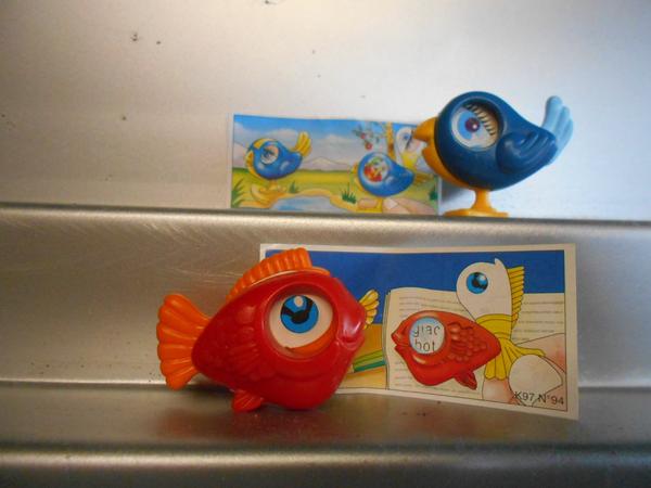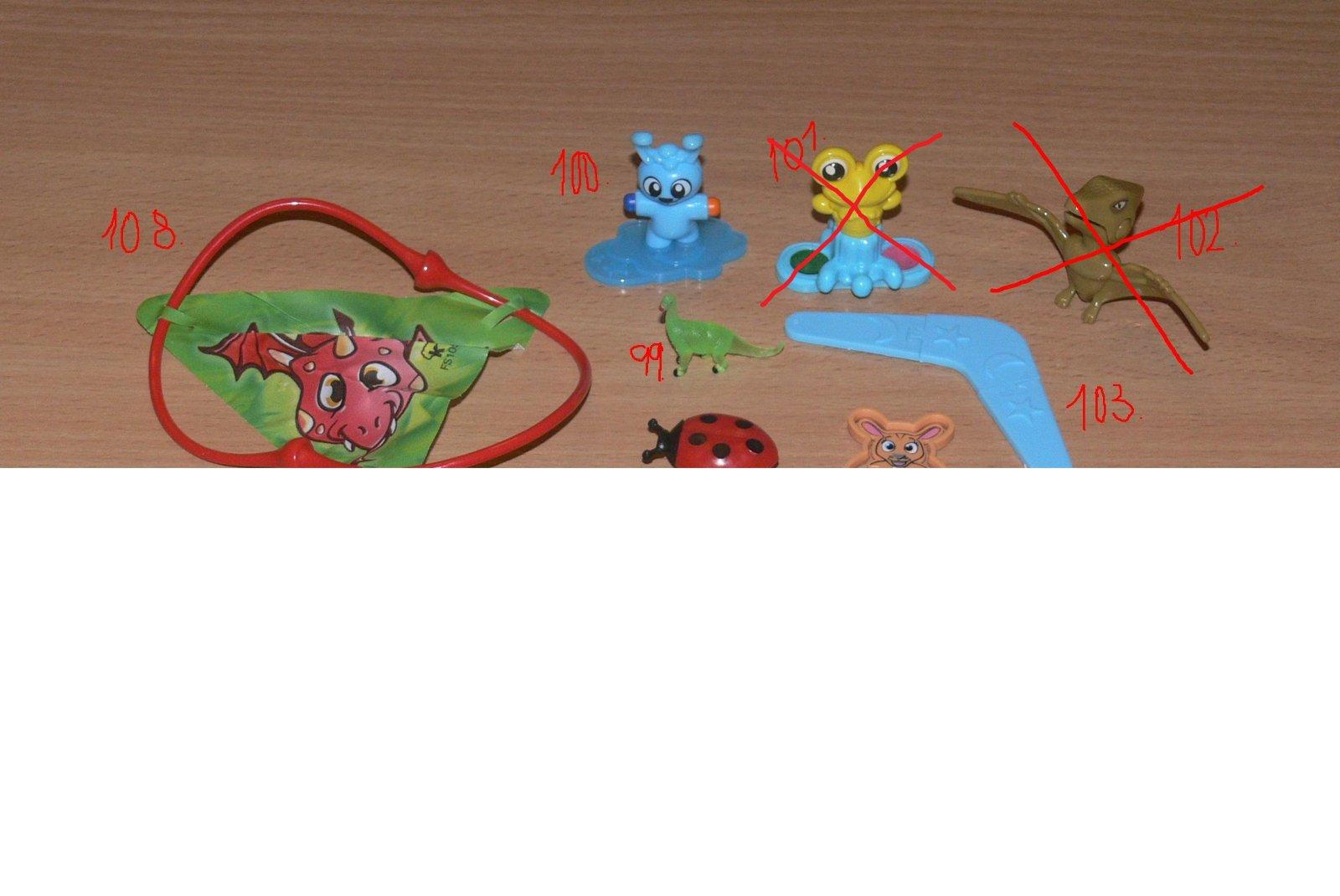 Uz pevnych par rokov nas drzi zbieranie figuriek z Kindervajicok. Poslednu dobu je to strasne. Kedze si vyberam tie tazsie vajicka, nejako sa nam namnozili niektore postavicky, napr. zo serie Atronautov mame asi 3 korytnacky, 3 medvedov a ziadneho papagaja. Zo starsej serie Natoon mame napr. troch hrochov. Ma zaujem niekto povymienat?