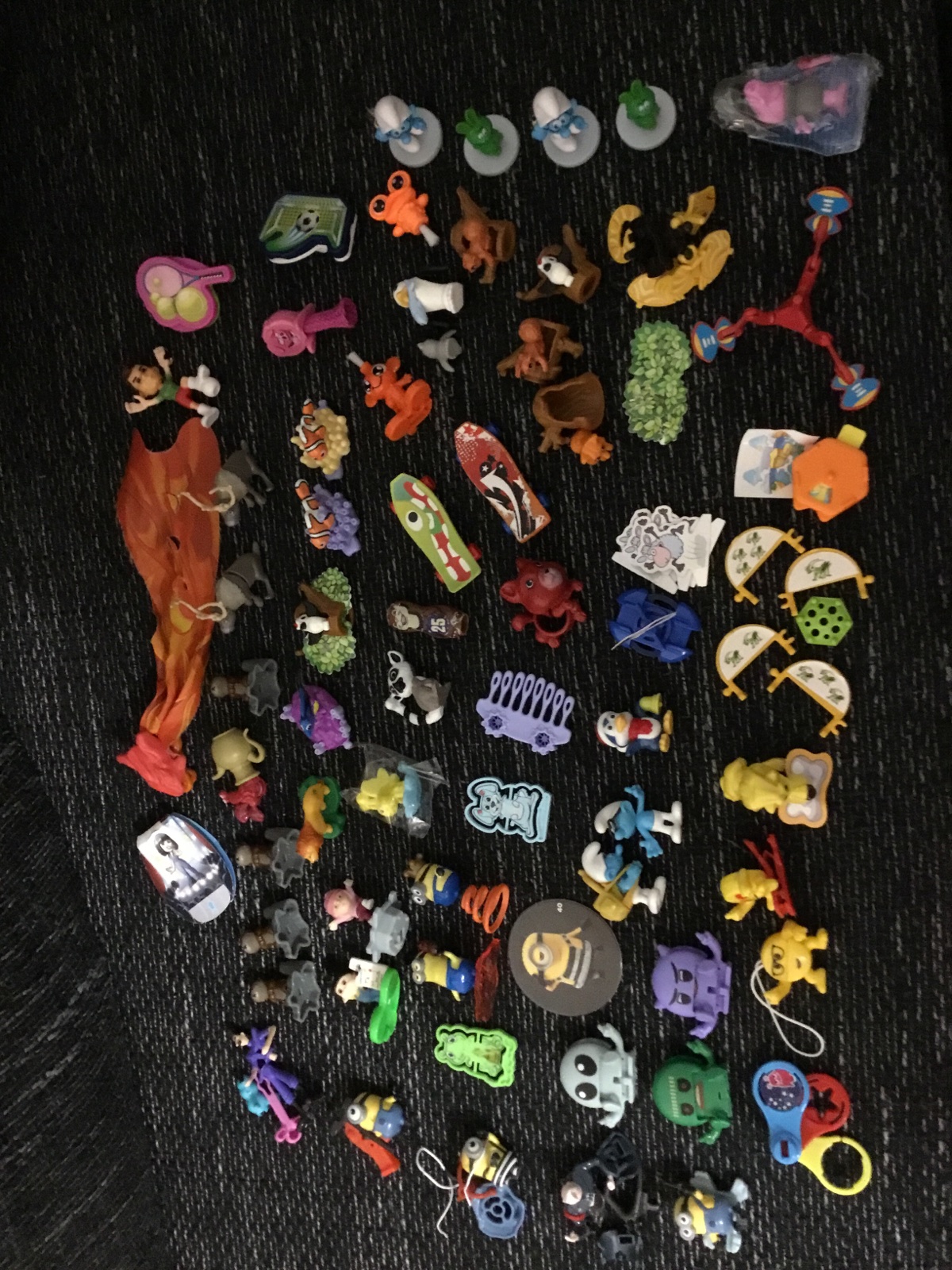 Uz pevnych par rokov nas drzi zbieranie figuriek z Kindervajicok. Poslednu dobu je to strasne. Kedze si vyberam tie tazsie vajicka, nejako sa nam namnozili niektore postavicky, napr. zo serie Atronautov mame asi 3 korytnacky, 3 medvedov a ziadneho papagaja. Zo starsej serie Natoon mame napr. troch hrochov. Ma zaujem niekto povymienat?