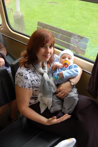 nakonec jsme si svatbu užili. Sice nazačátku byl malej protivnej, ale pak už to bylo ok. Jen v tom kočárku nechtěl být. Takže chování při obřadu a na hostinu jsem vzala lehátko. To už se mu líbilo 🙂 Ze všeho nejvíce se mu líbilo v historickém autobuse, který dělal naskutečný kravál. Tam vždy okamžitě usnul 😀