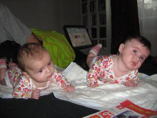 na a baby sa začali navzájom registrovať len asi dva dni dozadu, včera boli úžasné, dala som ich na bruško a otočili sa tváričkami k sebe, začali sa na seba rehotať a švitoriť si, bolo to krásne 🙂