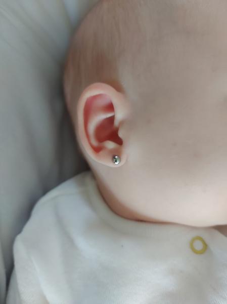 Nam sa stalo to isté,jednu naušničku má o 2mm vyšsie.To dieťa sa zľakne toho ked to tak cvakne a potom velmi plače a tá co nam to robila,to chcela rýchlo spraviť,aby tak neplakala a tak jej to tak urobila.No povedala,že keď dáme klasické naušnicky,tak to nebude poznať.Ja to poznám lebo otom viem.