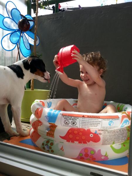 Krásne fotky, na každej vidno ako sa ľúbia. Ja osobne by som psíka vnútri pri malom bábätku nezniesla.sliny, chlpi, umývať,utierať, nevravím v zime. Mám rada čisto a nech sa pes aj raz týždenne umýva je ho dnu cítiť . Ja by som bola otrokom upratovania.