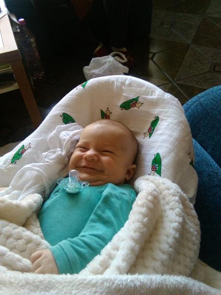 No a ten matracik sa vola cocoon baby red castle. Nepouzivam opasok ako na obrazku a ani tu vypln pod nozicky. Od narodenia v nom spi na boku ako ulitke. Spi v nom len v noci a rano si ho tam polozim na chrbatik a trosku debatime. Potom sa cely den vetra na vzduchu a spime v nom zase az vecer. Tak sa naucil, ze v nom po vecernom kupani a papkani ma sladko spinkat a aj sa o to snazi. Ak mu to samemu nejde, tak si sadnem na gauc a matracik si polozim na predkolenie a popri burlivom vine ho trosku hojdam a hladim po hlavicke. Za pol hodku zaspi a prenesem ho do spalne do jeho postielky. Ked ma nocne papanie tak som ho nakrmila a ulozila naspat, ale zase na druhy bok a tak som to vzdy striedala. Teraz iz asi tyzden v nom spime iba do prveho papanoa. Potom uz spime v postoelke pod perinkou. Ked budem mat druhe dieta, tak ho mozno budem hned ucit na postielku, ale to prve som si chcela uzit viac v naruci. No bala som sa, ze sa nauci zaspavat na rukach, tak som kupila toto a som neskutocne spokojna. Maly ma nim vybudovany rezim a ja som si naplnila srdce, ze ho mozem vecer trosku pomojkat, ale zaroven nenaucit ho velmi na ruky =)