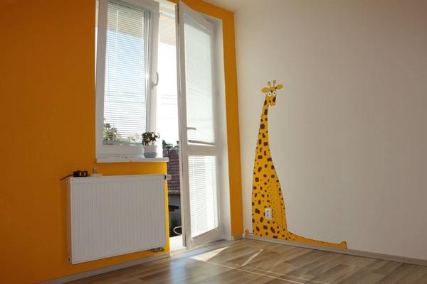 3 odtiene zelenej a na to nadväzujú 2 odtiene modrej... našla som len ako-takú foto pre predstavu. Máme tak vymaľované všetky steny a nábytok nám to scelil... Ale napríklad, čo sme maľovali so sestrou sa mi páči tiež. Dávali sme neskutočne sýtu žltú farbu a do toho sa dal robiť tmavohnedý nábytok. Izbu sme robili univerzálnu, keďže sme ešte nevedeli, čo to bude, či dievčatko, alebo chlapček. Iba jednu stenu sme nechali bielu a tam sme voľnou rukou nakreslili žirafy, medzi ktoré išla komoda... pre predstavu foto... máš toľko možností... odporúčam si vziať vzorky kvalitnej farby a špekulovať 🙂 P.s.: my sme použili vodeodolné a oderuodolné... takže packy sú hneď preč s jednou handričkou, neblednú a detská izba je krásna už 5 rokov 🙂