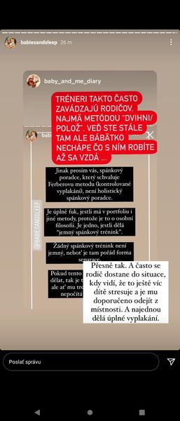 @miza88 no tak matka ktora chce uz konecne aby jej dieta prespalo celu noc vyskusa vsetko ja som este aj zaplatila dvojtyzdnovy plan na mieru. Mali sme videohovory kde sme sa rozpravali ja stale o tom istom a spankova poradkyna tiez😀 o tom svojom snazila som sa jej vysvetlit ze to nejde a nieje to v pohode ale ved myslela som si ze jej mozem doverovat a ze to pomoze. V noci ked syn zacal plakat lebo sa zobil po istom case tak dom ho na ruky za ziadnym okolnosti nemala brat mala som si sadnut k postielke a nechat ho plakat podla nej max hodinu a opakovat to stale. No ktora matka toto vydrzi klobuk dole ale lutujem aj to dieta. A co sa tyka penazi myslim si zeby mi ich nevratila ved ona mi plan urobila video hovory sme mali akurat ze sme to nedokoncili lebo som s tym uz buchla. Dokonca mi ani neodpisala od vtedy co to bolo v nasom pripade nauspesne sa mi absolutne neozvala na mail neodpisovala.