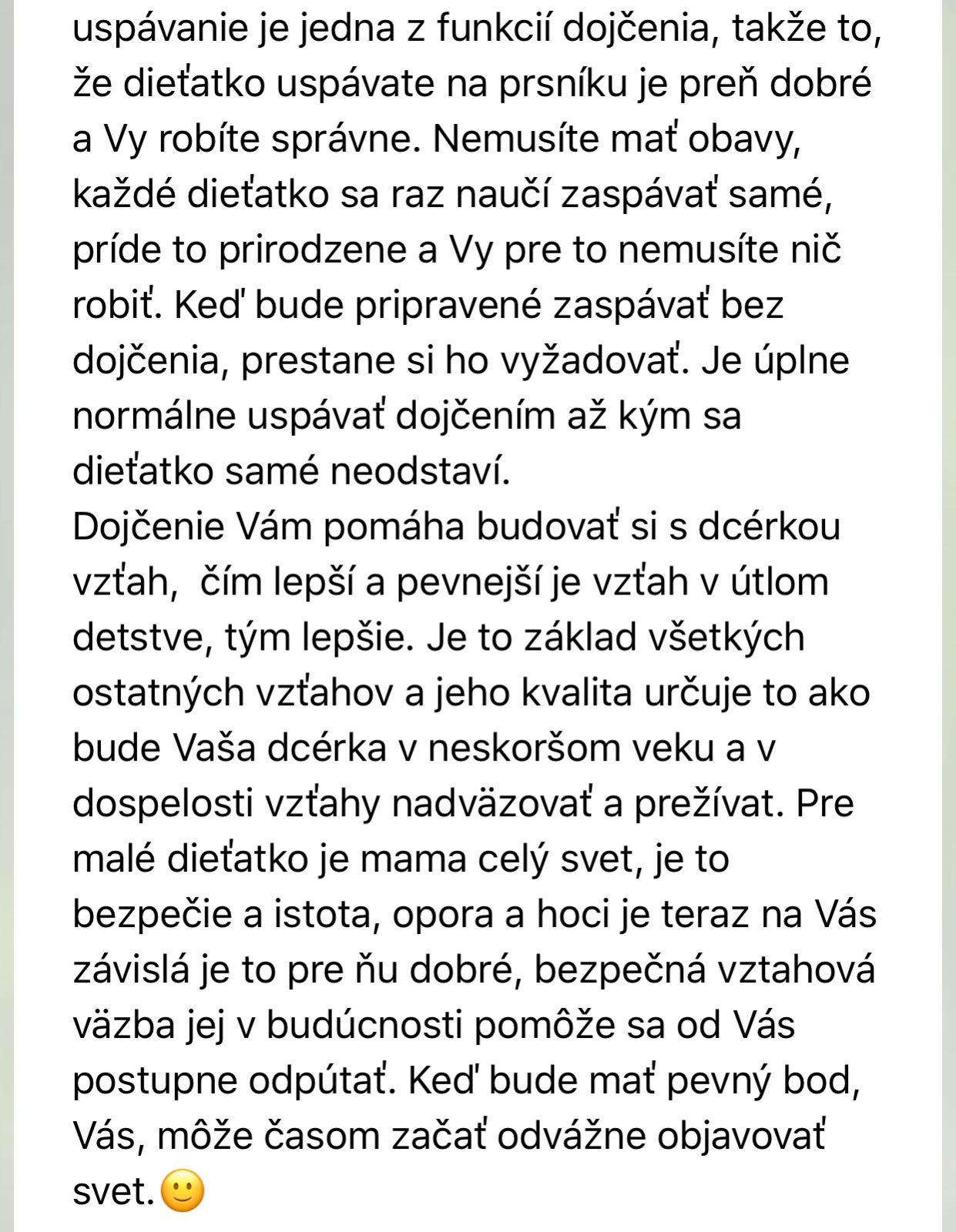 @uhnakova Inak videla som 1 dokument kte mali rodičia chronický nespave dieťa ... bolo to myslím v Anglicku pobehali s ním rôznych špecialistov a boli na čisto zúfalu dieťa asi 3rocne, bolo hore celé noci až sa nakoniec dostali k jednej spánkovej odborníčke ktorá im zaviedla úplne primitívne jednoduchú vec. Dievčatko muselo začať spať samé v svojej izbe V svojej postieľke a nesmelo prísť v noci k rodičom ako dovtedy a to tým docielila že večer im zaviedla pevný večerný rituál vždy úplne rutine rovnaký vrátane čítania rozprávky s maminou v jej v postieľke v detskej izbe.