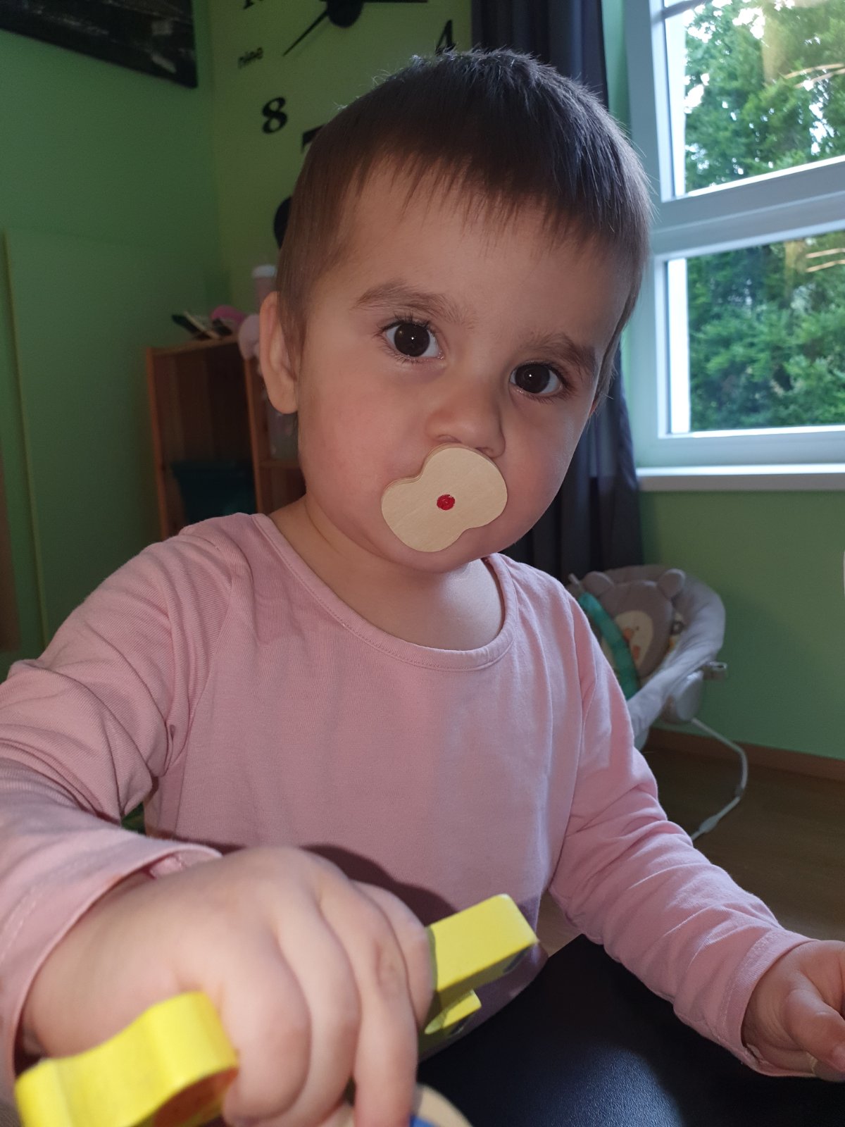 @makova333 ešte aj drevenú skladačku si dala namiesto cumlíka, no a vynaliezava je, preniesla si z gauča vankúše do postieľky aby mohla pomocou nich vyjsť z postieľky a ked nedosiahne niekde, dovlecie si lego tašku, postaví sa na ňu a dociahne