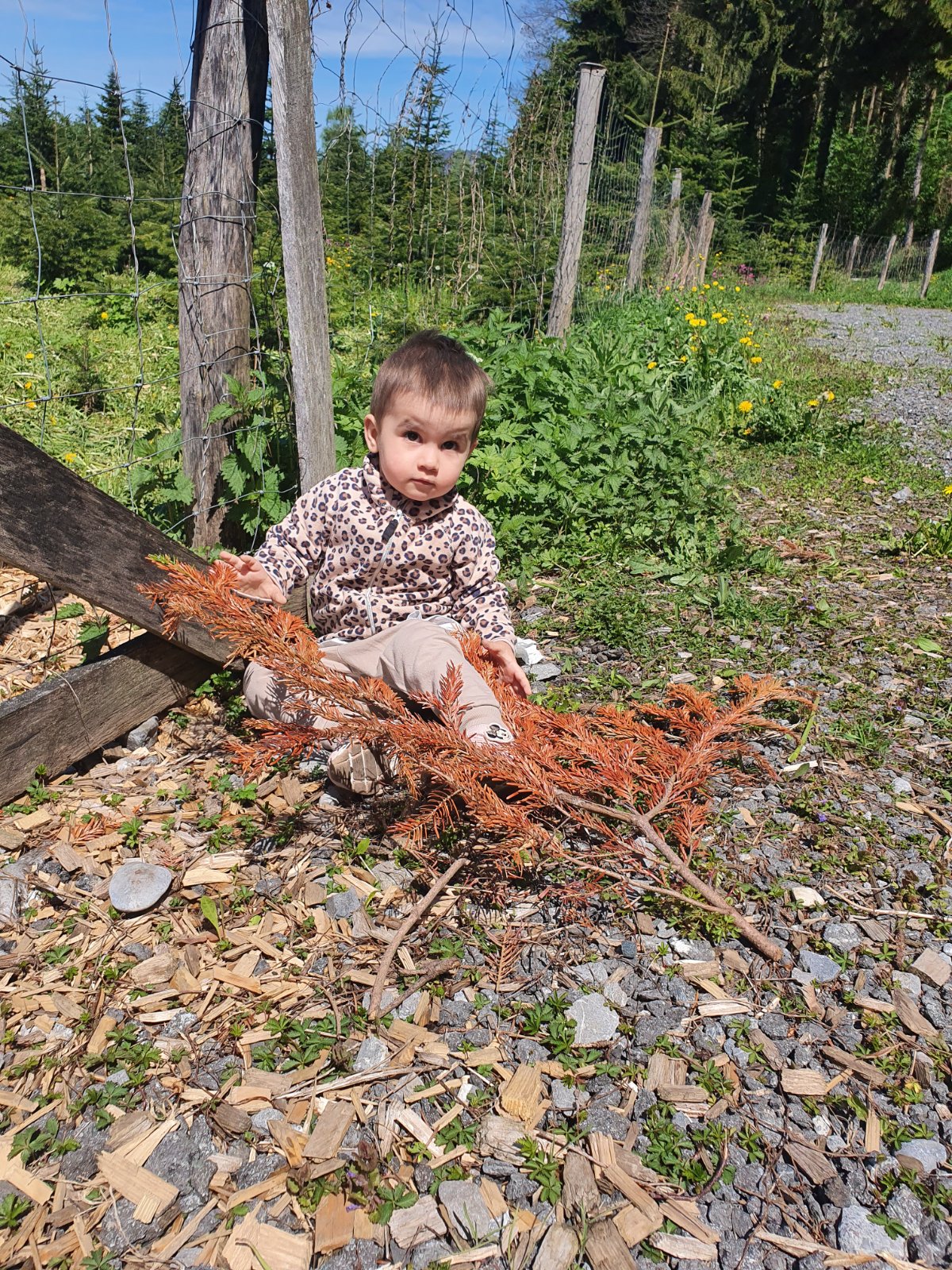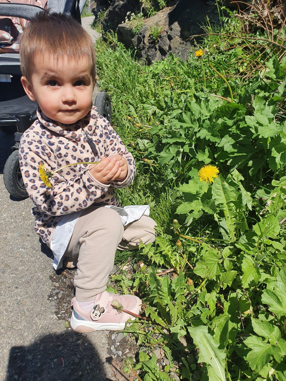 @tanapeta obkecenie je jej jedno aké jej dám a ked ju obliekam napríklad pravú ruku tak si preloží veci du druhej alebo pusti veci kym ju neobleciem, pozbiera ich a tak ide von, áno aj von ma plne ruky a zabudneme niečo zobrať pozbiera kamene alebo listy a tie nosi