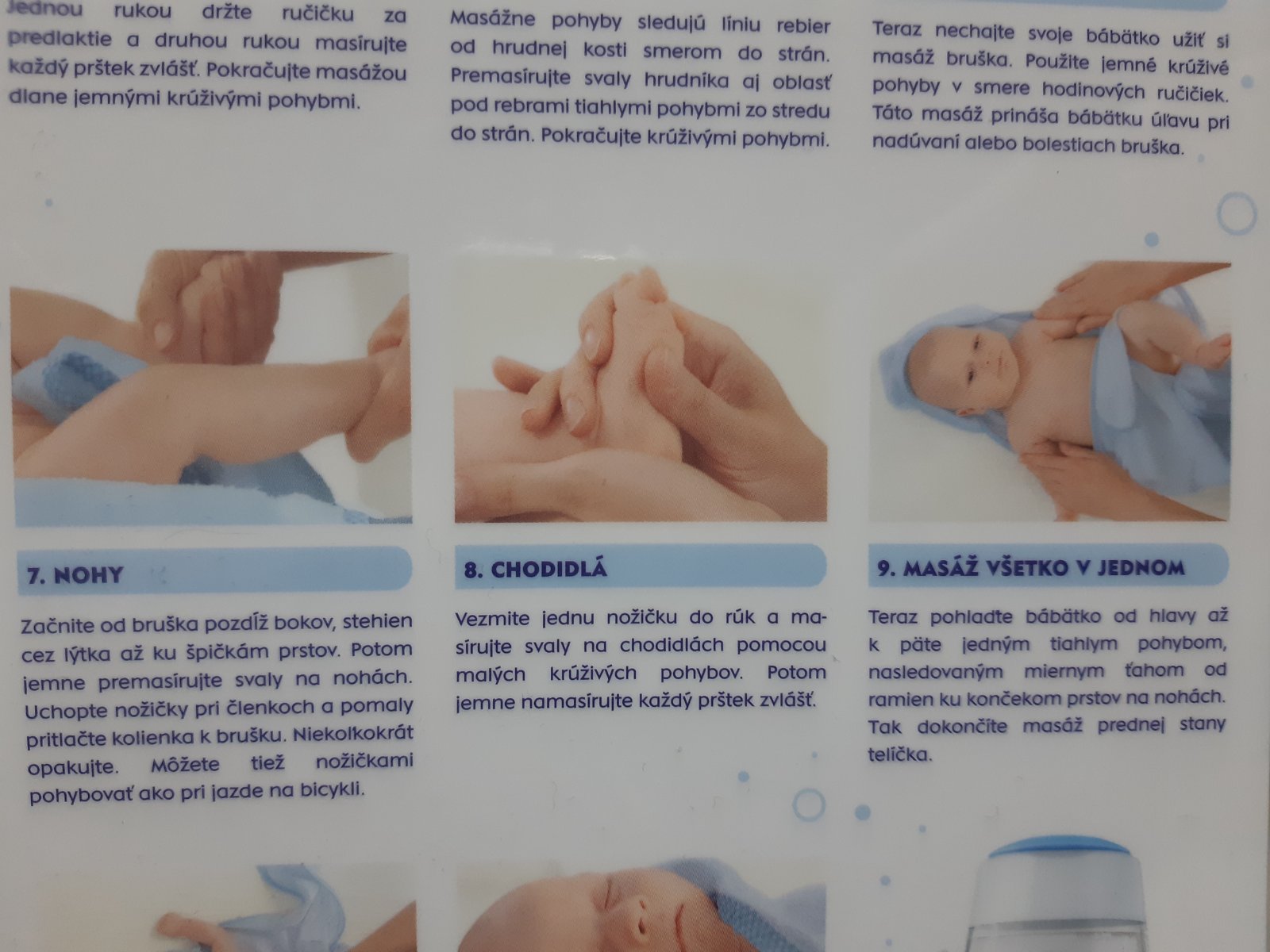 Ahojte. Chcela by som vediet masirovat malu, ma sice len 2 mesiace, ale co som citala, tak deti potom su kludnejsie, lepsie spinkaju a papkaju. Mate niekto skusesnot, alebo chodili ste niekde na take masirovanie deticiek alebo niektore ste sa toaj naucili? Ake su Vase skusnosti? Su naozaj deticky spokojnejsie a lepsie spinkaju?