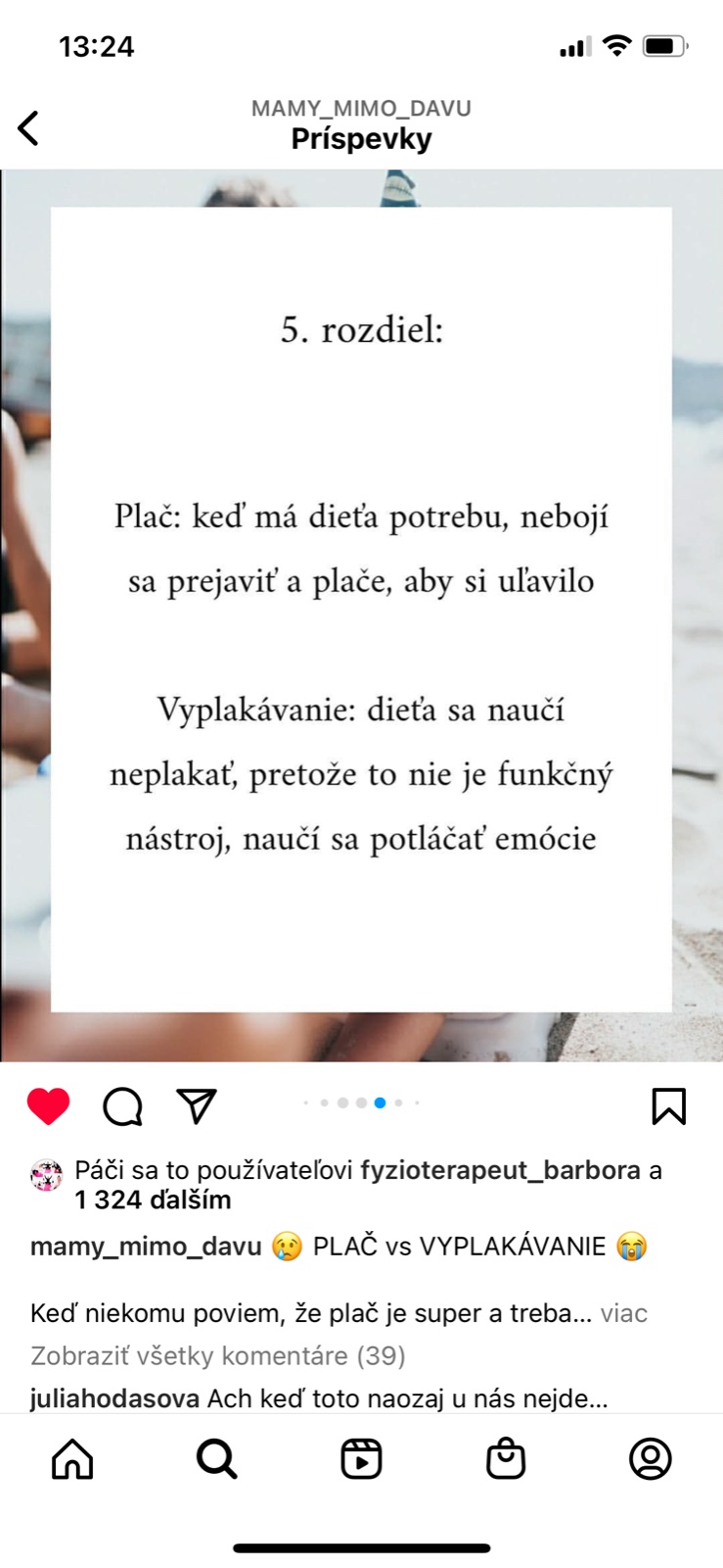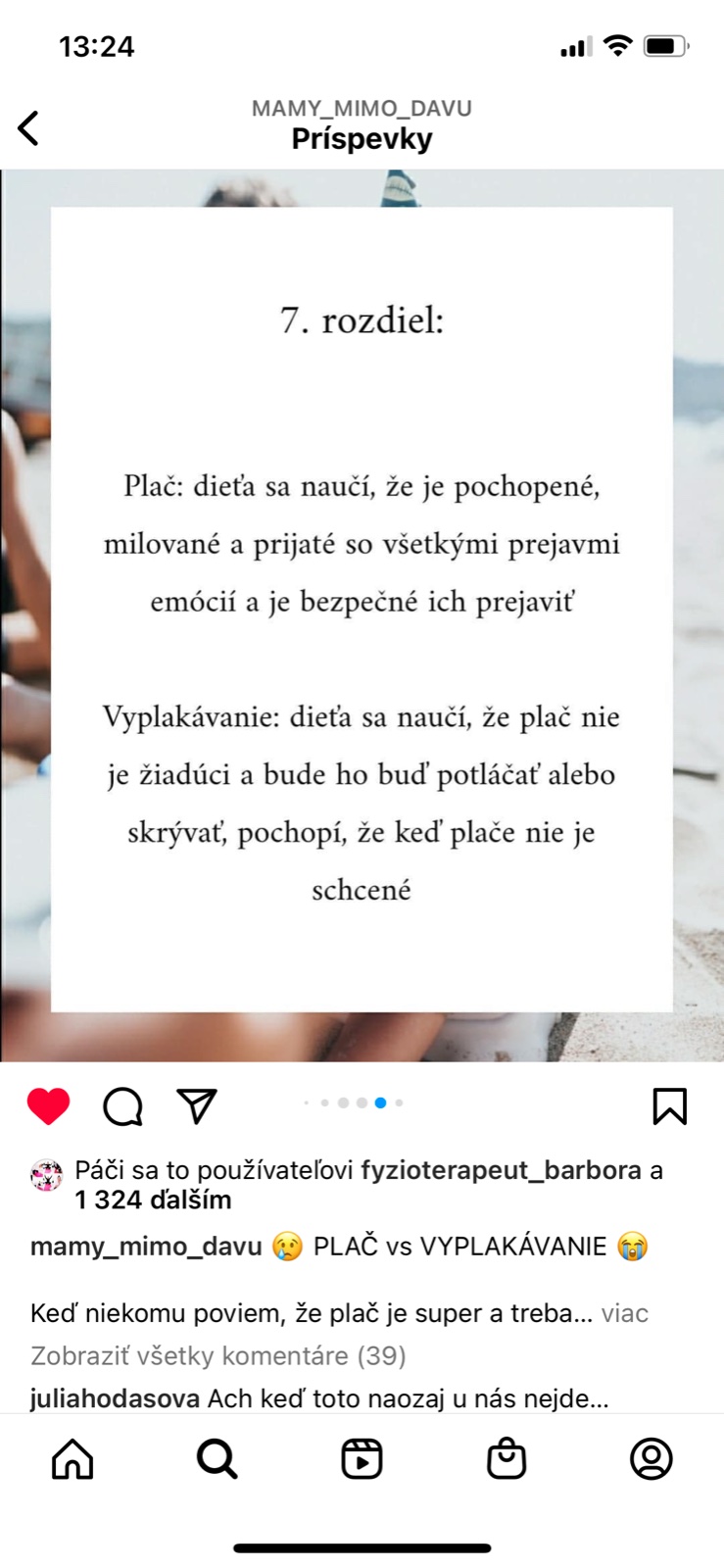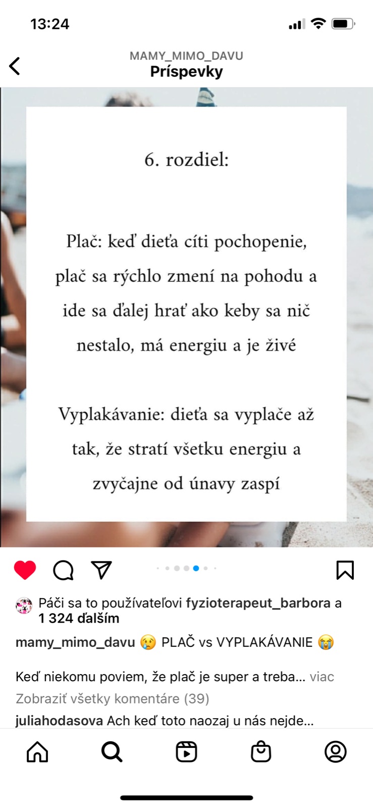 A k tomu teda patri ta najdolezitejsia sprava pre vsetky, ono to chce istu mieru laskavosti aj k sebe samemu aj k ostatnym, aby si tu nepisali 2 tabory takych a inych matiek, ale aby respektovali to ako to ma druhy clovek. Pretoze druha krasna veta Matejckova je, ze najviac ucime, ked neucime, teda ak chceme raz, konecne niekedy mat spolocnost laskavu a ohladuplnu, tak take musime byt na seba, predovsetkym my mamy. Drzte sa, zvladnite, pocuvajte viac babatko a menej okolie, dobry je taky ten vnutorny hlas, ktory vam hovori ako to prave to vase dieta potrebuje. Nie svokra, nie kamoska, nie instagram.