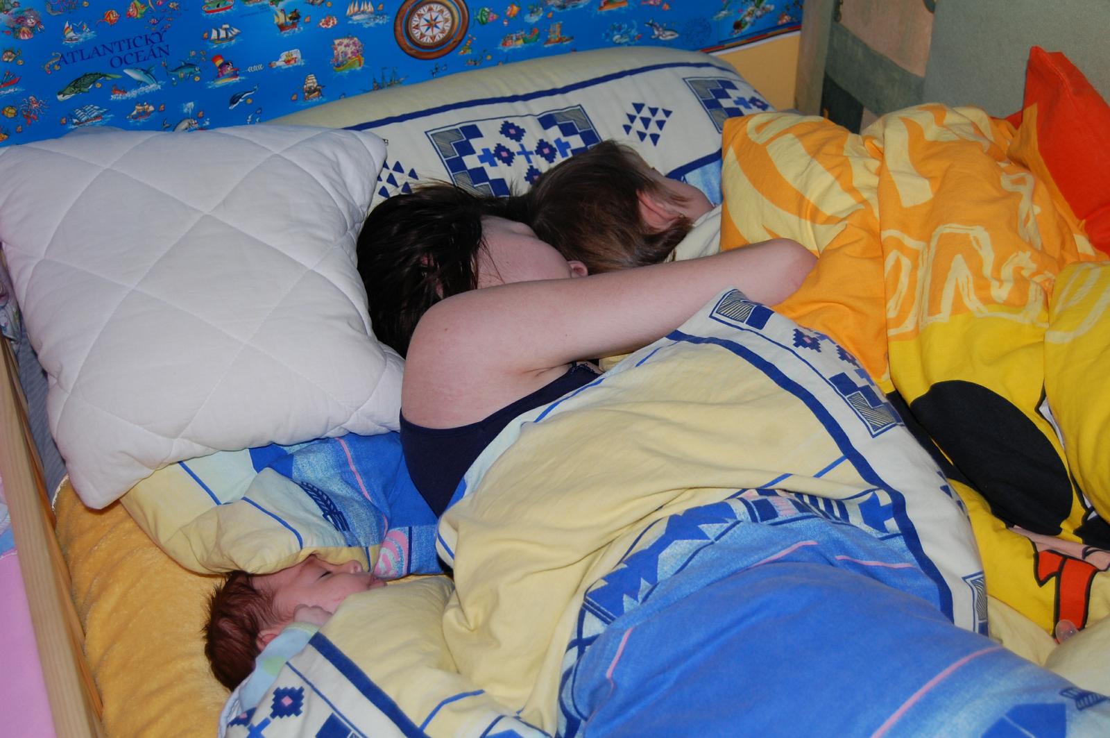teraz, ked sa v noci presunu k nam, tak ich muz chodi prenasat. jednak sa do nasej postele vsetci 4 nezmestime a selektovat, kto z nich ostane sa neda, a jednak mladsi strasne kope a bucha kade-tade, lozi po celej posteli, takze sa nevyspi nikto. a presne ako pises - cely dalsi den su obaja nervozni, len sa hadaju a nic ich nebavi.