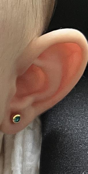 Tiež mala malá nepresne nastrelené. Pri tých nastrelovacích náušničkách to bolo fakt že dosť vidieť. Ako sme časom zmenili za zlaté, podrástlo uško, vôbec to nevidno.