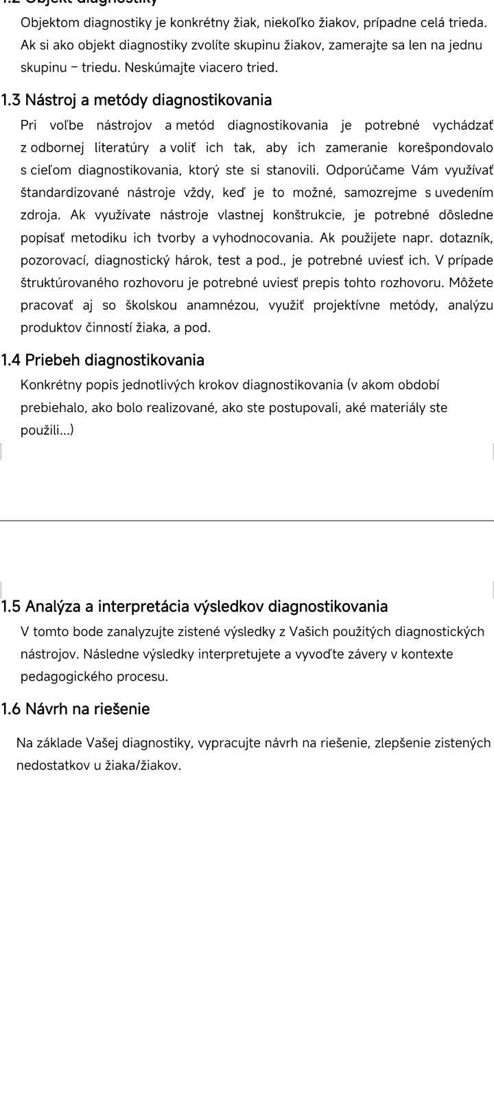 Uplne navrh rieseni nemusi byt ..ona ma overit hypotezu - ciel, ci ho splnila ,alebo sa jej nesplnil. To nemusí nutne znamenať aj nejaké riešenie. Dokonca na kurze,ktorý som robila, bolo v časti diagnostika, že ty ani nemáš navrhovať nejaké riešenia( nie si psycholog ani specka, mas vediet iba aku taku diagnostiku a jej metody), ty si máš len stanoviť cieľ čo ideš vlastne zistiť , že máš podozrenie na nejaký problém u detí, alebo dieťaťa,urobíš nejaké kroky na jeho zistenie a v závere napíšeš či tieto zistenia . A tvoja hypotéza sa potvrdili , či teda boli pravdivé a následne môžeš dvoma troma vetami spomenúť, že budeš napríklad spolupracovať ďalej teda s psychológom, alebo navrhneš cpp a podobne.