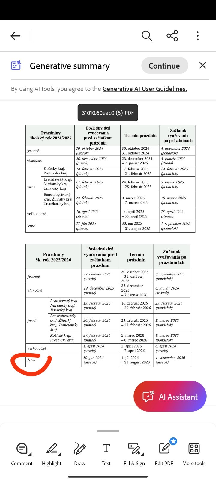 @anonym_autor My máme svoje termíny, česi s tým nemajú nič spoločné. Podľa môjho názoru by deti mali chodiť do 30.6. normálne do škôl, veď aj tak majú za celý školský rok prázdnin dosť, vrátane tých dvojmesačných a človeku to bodne, keď si môže od detí oddýchnuť alebo im vyslovene nemusí vybavovať opatrovanie na čas, čo nie je doma.. avšak to, že sa deti posledné dni neučia neovplyvním 😂.