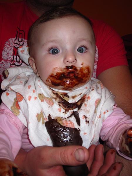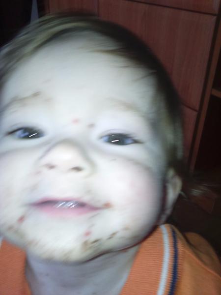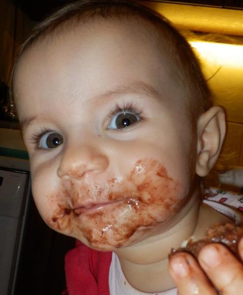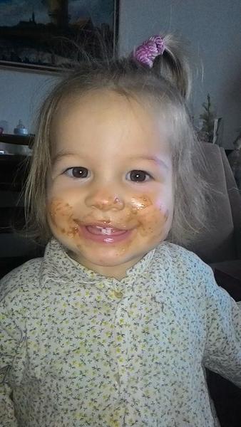 Na tuto fotku až taka hrda nie som, synček na nej mal len 10 mesiacov a také male deti by čokoladu ešte jesť nemali. Na moju obranu, ochutnať mu ju dali svokrovci. Ale fotka sa mi, samozrejme, pači 🙂