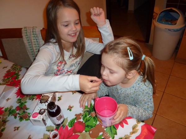 Mamka zasa ruky lomí,treba dcérkam zobrať sirup kalciový.