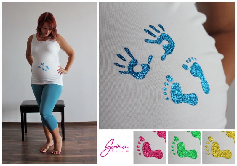 Ahojte. chcem dať známej urobiť takýto darček. Bude to tehotenské tielko s ručne maľovaným motívom. Ide o to, že sa neviem rozhodnúť či tam nechať takéto odtlačky alebo mám vymyslieť nejaký originálny nápis prípadne obrázok. Pani mi namaľuje čo jej poviem, takže som rozmýšľala aj nad niečím iným. Viete mi prosím poradiť? 🙂