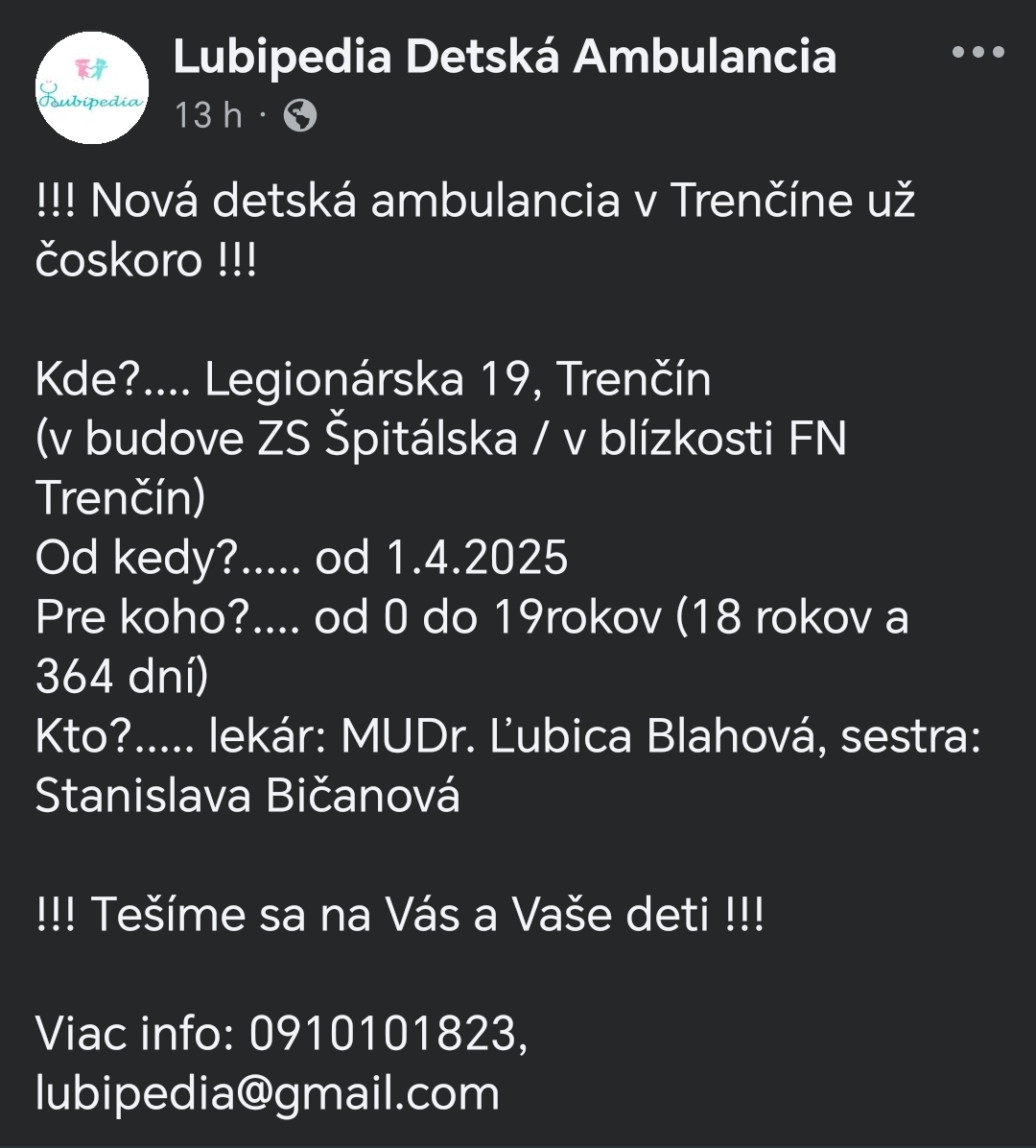 Ktorý detský doktor v Trenčíne prijíma nové deti?
