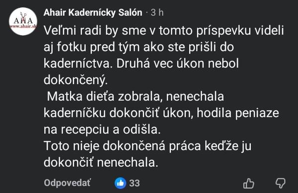 @1europa23 keď si to kaderníčke vysvetlila tak, ako píšeš tu, tak sa nečudujem výsledku. Nedokážeš normálne napísať 1 vetu. Kto ti má rozumieť? Miesto socialnym sieťam sa viac venuj deťom a tomu, čo robia. Buď rada, že si len odstrihla ofinu a nevypichla oko. Rada do budúcna: odlož nožnice mimo dosahu detí.