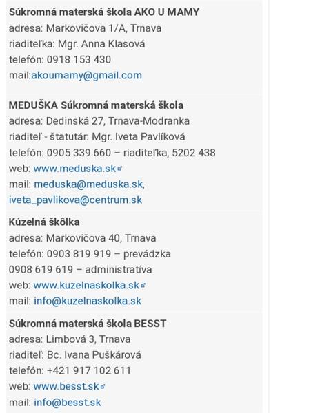 Dobrý deň , chcela by som sa vás spýtať či by ste mi neporadili nejaké dobre súkromné skolky v TT. Môj syn bude mat koncom aprila tri roky a kvôli kapacitnými možnostiam mi ho asi najskôr do statnej nezoberú . Vdaka za info