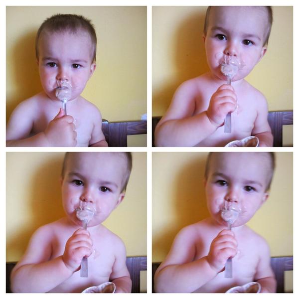 U nas prve samostatne papanie jogurtika 🙂