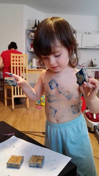 Ako vidíte na obrázku moja dcérka je riadna výmyselníčka, dá mi zabrať. Tak ja sa popri nej dopujem čokoládou, potom sa mi urobí sem tam aj nejaká vyrážka, preto naša najobľúbenejšia kozmetika je normaderm. A večer keď sa odličujem, tak malá potvorka je mi v pätách, takže micelárnu vodu jej musím takisto dať na odličovací tampón 🙂 🙂 Musím micelárnu vodu vyskúšať aj po pečiatkach, možno nám to pôjde ľahšie🙂