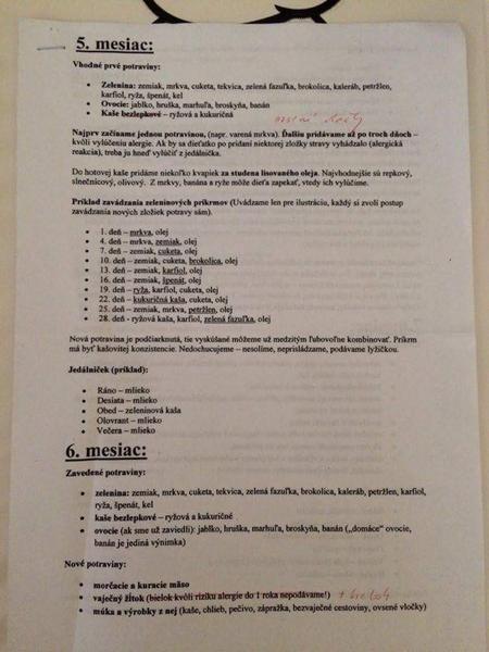 @mimirolko Zatial nie. A zacat najskor cistou zeleninou, varenou v pare alebo cistej vode, na jemno popucit alebo este lepsie, zo zaciatku mixovat. Zemiak este nie. Az ked ochutne 1-2 tyzdne rozne druhy zeleniny, pridas zemiak. Ked bude pekne jest zemiak+zelenina, pridas mäso. Kompletny obed je zhruba: zelenina, zemiak (ryza, cestovina), mäso, repkovy olej, lyzica cistej 100%tnej jablkovej stavy (koli lepsiemu prijatiu zeleza). Ked je to tost kuste, tak pridas trochu prevarenej vody a mixujes. Aspon u nas v Nemecku je toto zauzivany postup.