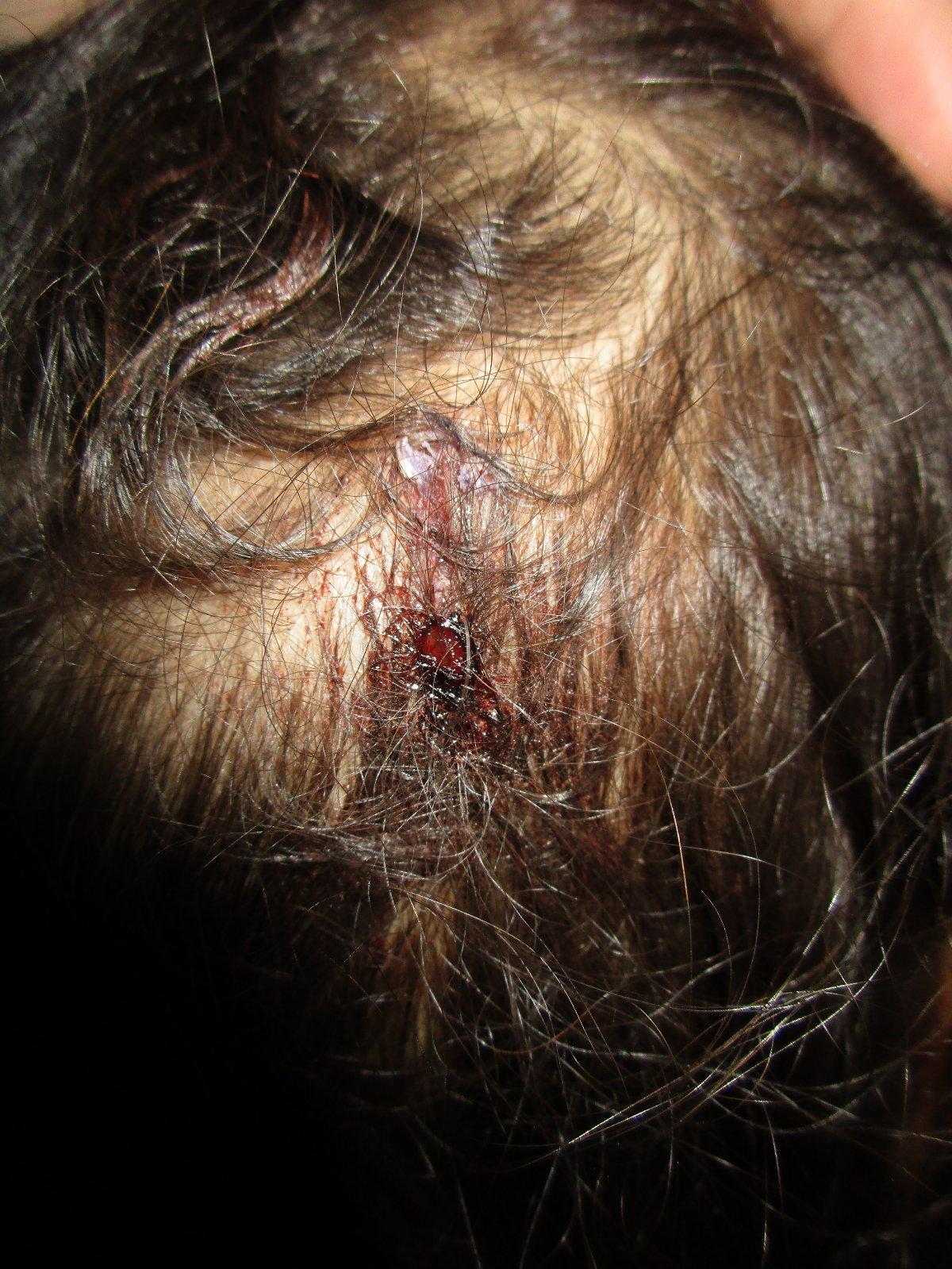 Rozbitá hlava a vlasy v zalepenej rane