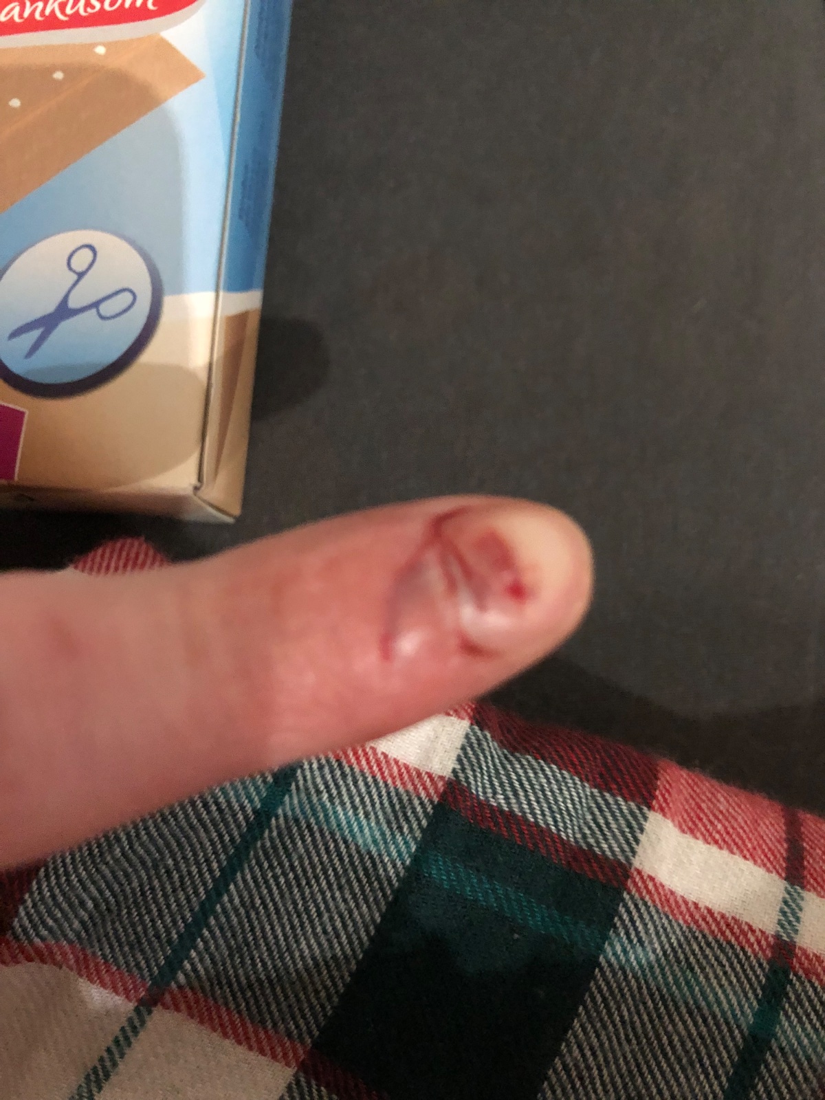 Z vrchnej strany nechtu a pod nechtom mi to prerezalo 😫 zalepila dom si to s dala ľadový obklad no boli má z toho cela ruka … viete poradiť niečo ??