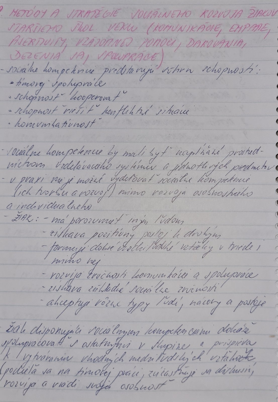9. Metódy a stratégie sociálneho rozvoj žiakov mladšieho školského veku (komunikácie, empatie, asertivity, vzájomnej pomoci, darovania, delenia sa, spolupráce)
