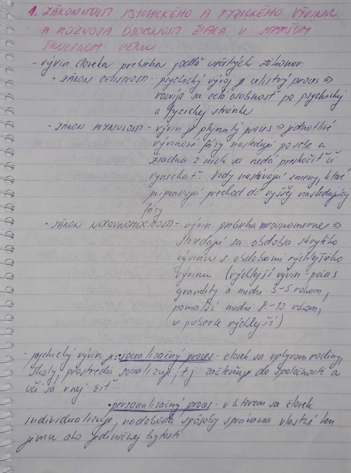 1. Zákonitosti psychického a fyzického vývinu a rozvoja osobnosti žiaka v mladšom školskom veku