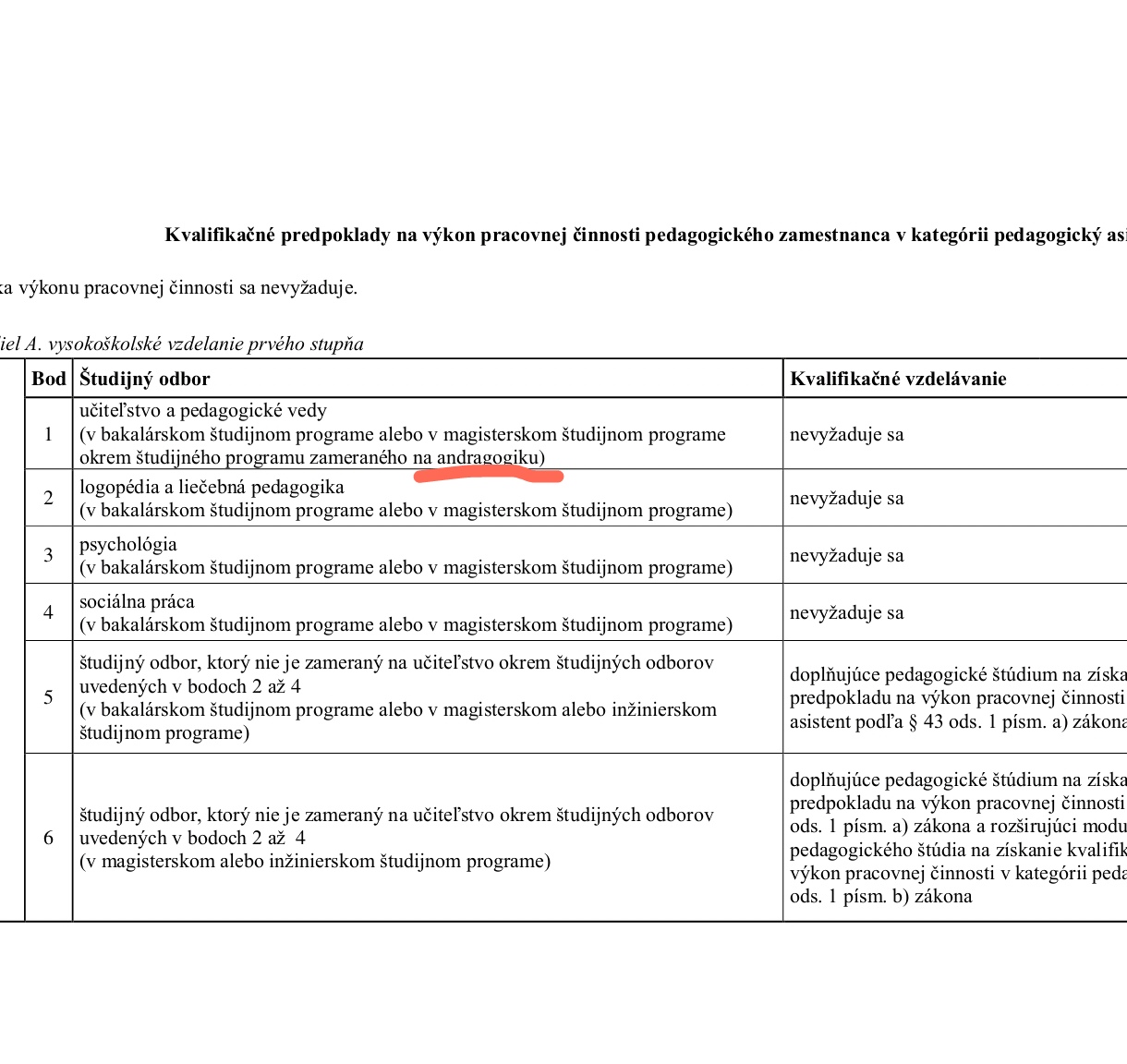 @slamkasalamka skontrolovala som si to a veru majú pravdu. Lebo áno, pokiaľ vystupujes akýkoľvek odbor z oblasti pedagicke vedy tak nemusíš tak ako som písala... Lenže andragogika je jediný odbor ,ktorý aj keď tam patrí ,vzťahuje sa naň výnimka. Takže ma to najprv riadne zmiatlo a ospravedlňujem sa . Každopádne, choď radšej na bc . Predškolská pedagogika. Urobíš to nie za 2 ale za 3 roky, ale platí to tak ako vychoske , učiteľke ms a aj pg asistentke.