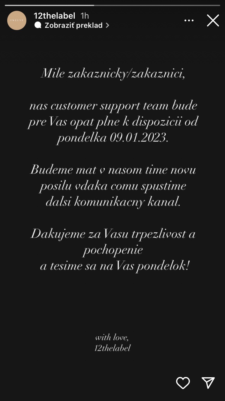 Máte niekto skúsenosti so slovenskou značkou 12THELABEL, ktorá predáva cez Instagram teplákové súpravy? Dodanie malo byť 3-4 týždne. Po 7 týždnoch nemám nič a nekomunikujú. Ak aj nemáte určite nenakupujte. Čiernota bez faktúry alebo bloku. Všade pod príspevkami obmedzené komentáre aby im náhodou niekto nenapísal reálnu odozvu. Prosím ak máte skúsenosti, dajte vedieť 🙂