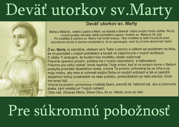 Pred niekoľkými týždňami som náhodne narazila na tzv. modlitbu Deväť utorkov svätej Marty, ktorá dáva prísľub, že skôr ako uplynie deväť týždňov dostaneme to, o čo v modlitbe vrúcne prosíme 🙏