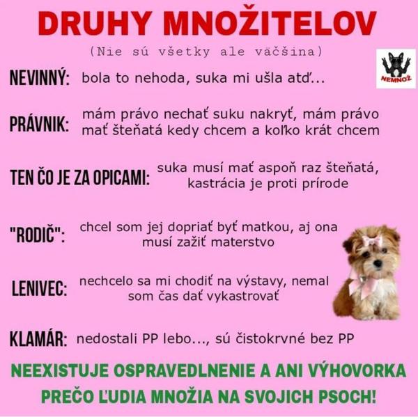 @simsalabim mimochodom, ano pochadza, mnoziaren nemusi byt len o klietkach v pivnici. Chovatel = registrovany chov = CHS. Mnozitel = mnozi bez registracie chovu a zalozenia CHS, a pokojne to moze byt aj doma na gauci na jednej fene. A nazor, ze kupou ho zachranuje... holt.. asi ako napisala